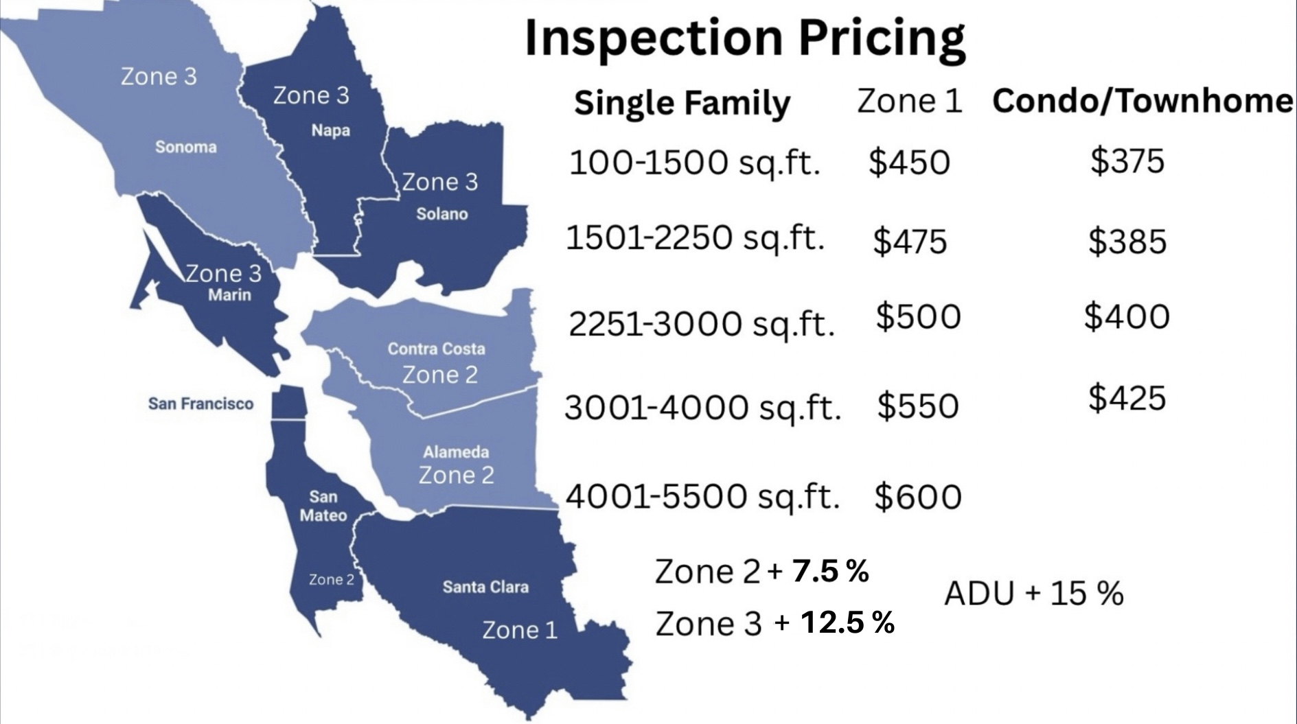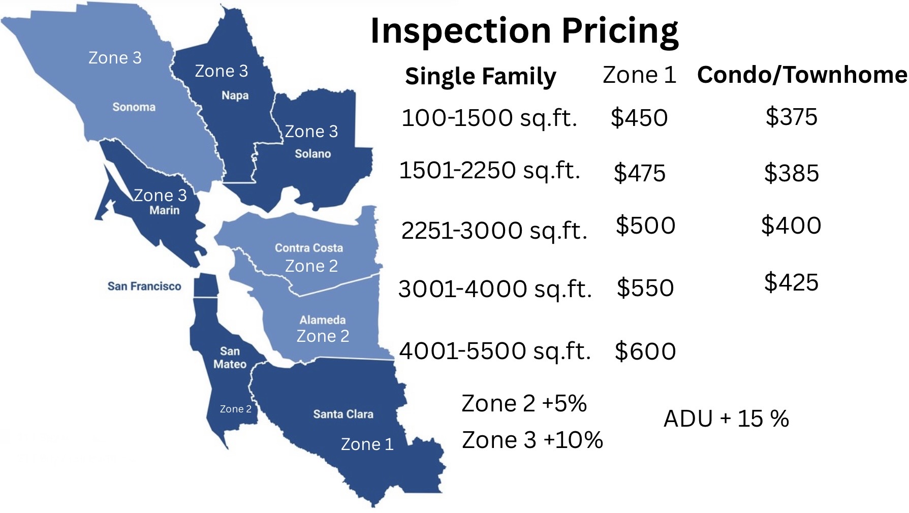 Serving the entire Bay Area and surrounding counties. Get Inspected !!!